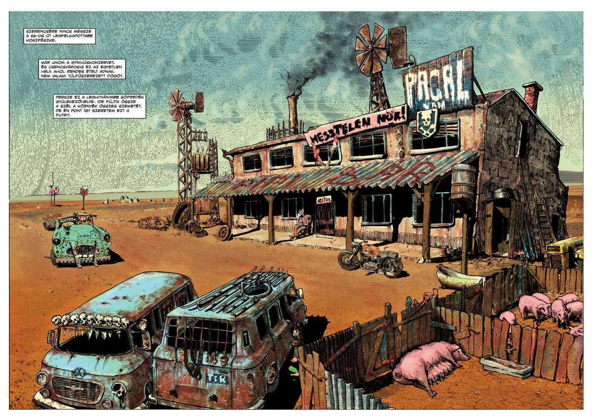 A kezdeti, fekete-fehér verzióhoz képest szövegileg és képileg is alaposan átdolgozott képregényen bizony meglátszik a belefektetett rengeteg munka. Szerelemgyerek ez, ráadásul szerencsés csillagzat alatt született, hiszen az író hosszas kilincselés után, de talált magának kiadót, plusz olyan helyzetben is volt, hogy műve megkaphassa az annak kijáró reklámot és ismertséget, amire más magyar képregényeknek vajmi kevés esélye kínálkozott (talán az egyetlen szomorú sorsú Kittenberger kivételével). Mindennek köszönhetően ez a posztapokaliptikus hommage frankofón képregényeket meghazudtolóan gyönyörű kiadásban, keménykötésben, stílszerűen rozsdamarta, barnás színvilágú köntösben jelenhetett meg.