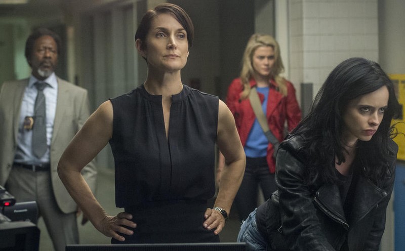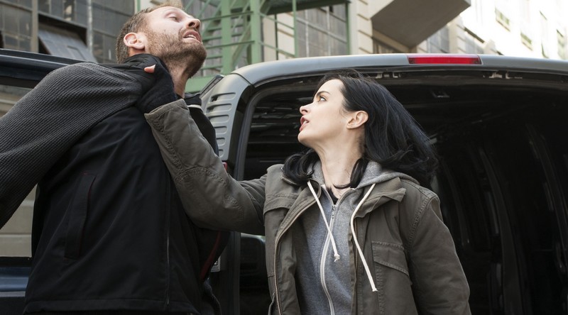 Melissa Rosenberg showrunner (Dexter és – le se merem írni – Alkonyat-széria; viszont ne hagyd, hogy ez eltántorítson) szerkezetileg azon az úton jár, amelyet fél éve a Daredevil kitaposott magának. Részről részre, a cselekmény alakulásával párhuzamosan fedi fel a karakterek hátterét, kapcsolatuk természetét, vagyis csak a durván 13 órás „film” második felében kezd igazán összeállni mindenki pontos motivációja és szerepe. És persze ugyanazt a sötét, drámai, a zsánerhez képest realisztikus hangvételt kapjuk, és ugyanúgy New York sikátoros-mocskos-lepukkant pöcegödrében gázolunk térdig – szóval mondhatnánk, hogy nincs új a nap alatt. Kivéve, hogy van.