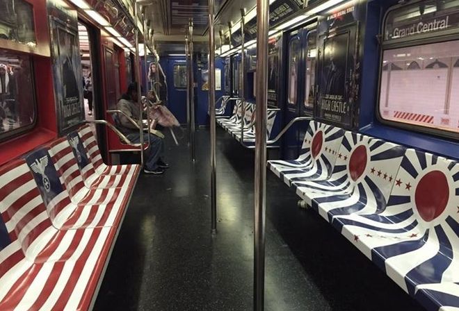 Így reklámozták a New York-i metrón a THE MAN IN THE HIGH CASTLE-t (amelyben a második világháborút a tengelyhatalmak nyerték, és Amerikát felosztották Németország és Japán között) - legalábbis amíg az utasok ki nem akadtak miatta. Végül beszüntették a kampánynak ezt a részét. Évadkritikánk: itt.