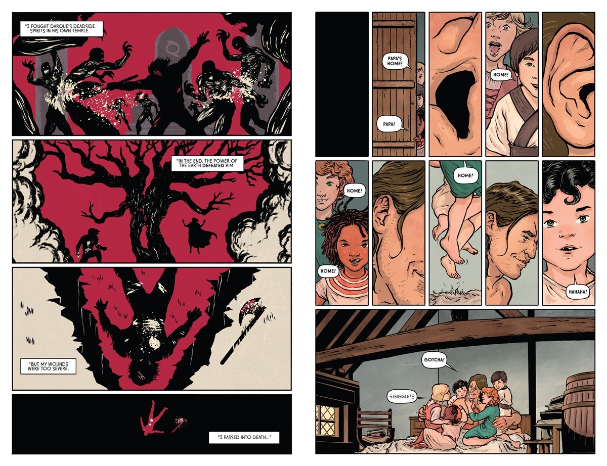 Most azonban az egyik sztárjátékosuk (szó szerinti) újraélesztését nézzük meg közelebbről: a hatezer, az emberiség szolgálatában töltött, vértől iszamosan küzdelmes év tapasztalatával bíró Örökkévaló Harcosét. Gilad az életét adta a világa és egy annak végzetét kezében tartó kislány kedvéért, ezúttal pedig azt is megtudjuk, hová kerül, amikor a halandók életének lángja kialszik. A saját különbejáratú Túlvilágára, ahol soha véget nem érő küzdelmének jutalma várja: az otthon melege, a rég elvesztett gyermekei szeretete, kedvenc ételeinek illata, halott feleségének ölelése. Megtudhatjuk, mi a legnagyobb áldozat, amit valaki a másokért érzett kötelességtudat miatt meghozhat: Gilad saját Édenkertjét hagyja maga mögött minden egyes alkalommal, a szabad akaratából, amikor visszatér a halandók közé, hogy újra felvegye a harcot az őket fenyegető erőkkel.