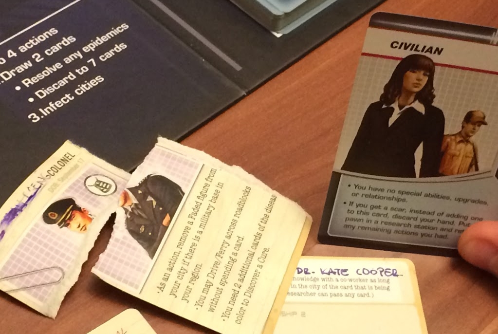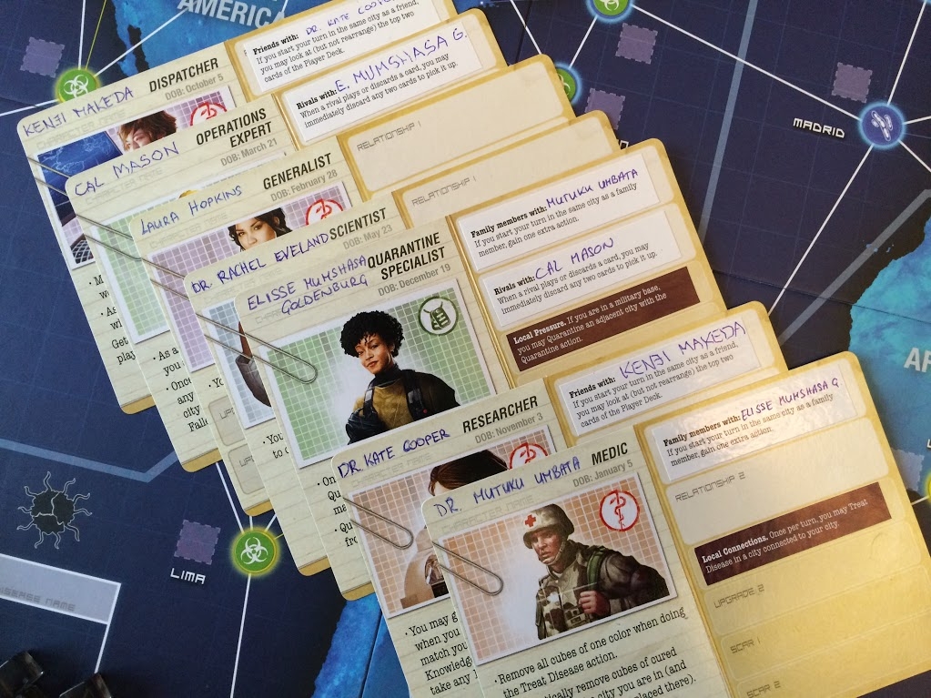 Arra is egyszerű a válasz, hogy mitől lett ilyen népszerű: a filmsorozatokat megidéző játékmenetétől (az igazsághoz hozzátartozik, hogy a Risk 2011-es Legacy kiadása használta először ezt az új kampányszerű megközelítést, de jótól lopni nem bűn). A Pandemic Legacyban játszmáról játszmára alakul a történet, így sajnos anélkül, hogy valami súlyos, az élményt romboló spoilert el ne sütnék, nem tudok róla részletesebben nyilatkozni, azonkívül, hogy meglepő és érdekes fordulatokkal operál. Ahogy haladunk előre a sztoriban, úgy nyílnak meg új lehetőségek, jönnek be új mechanizmusok, szereplők, akadályok, és mindez tökéletesen illeszkedik az eredeti játékrendszerhez. A szabályfüzet első fellapozásakor már jól látszanak a betűjelekkel ellátott üres helyek, ahová a vírusirtás folyamán kell majd az új szabályokat beragasztani, méghozzá egy lezárt dossziéból. A karaktereink pedig fejlődnek, kapcsolatokat építenek ki egymással, és akár meg is halhatnak - igen, végleg, ez esetben szét kell tépni a lapjukat.