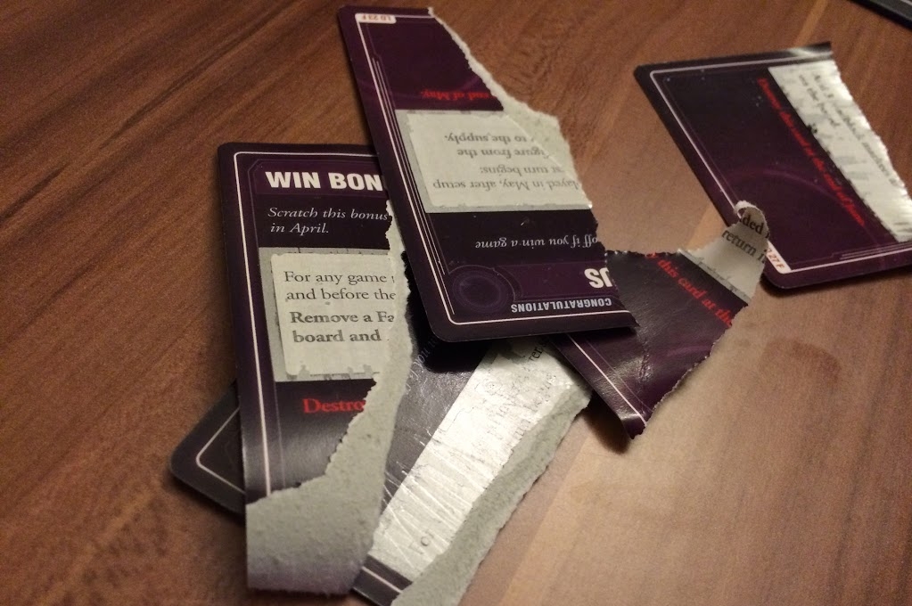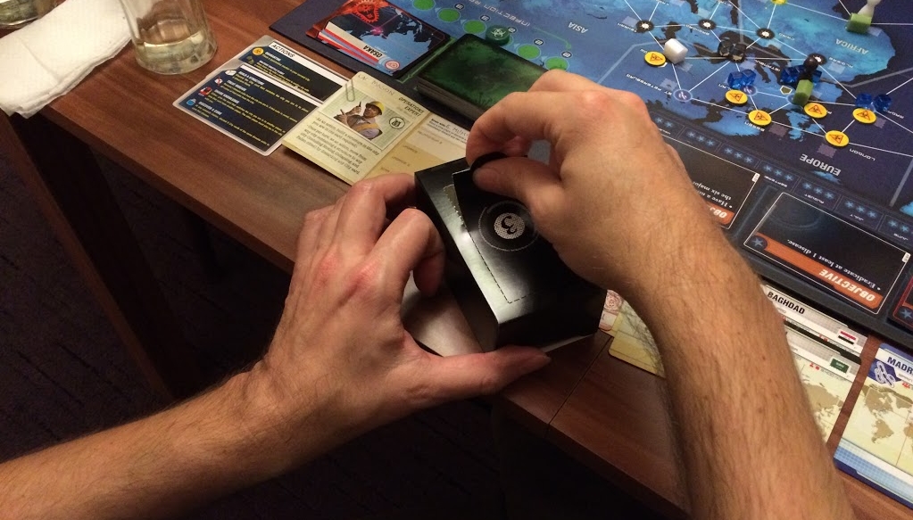 Na ezen fordított egy óriásit Mr. Leacock. A Pandemic Legacyban ugyanis minden játszmának következményei vannak. Mégis hogyan? A kártyákra és a táblára ragasztandó vinyettákkal, a kaparós sorsjegyekhez hasonló lapokkal, a rejtett tartalmú dossziékkal meg dobozkákkal és legvégül bizonyos lapok széttépésével.