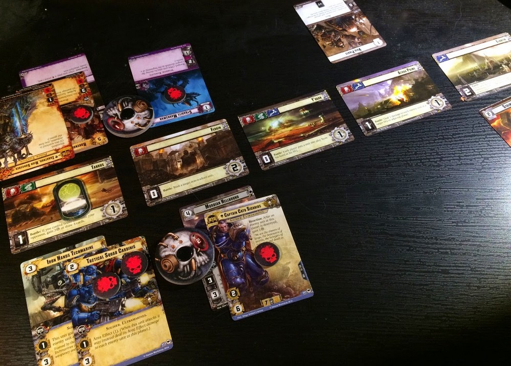 A pakli bütykölésének kreatív folyamata csak egy része az LCG-ben rejlő örömöknek, a hangsúly természetesen az idegtépően intenzív összecsapásokon van. Az „idegtépő intenzitás” pedig nem költői túlzás, ha a legfiatalabb LCG-ről, a Warhammer 40k köntösébe bújtatott Conquestről beszélünk. A játék egy brutális háborút modellez a jól ismert rosszfiúk között az univerzumnak kifejezetten a Conquesthez teremtett Traxis szektorában. Először hét bolygókártyát sorsolnak ki a felek, melyek hét potenciális csatateret jelképeznek. Ezekért folyik a küzdelem. A bolygókon különböző szimbólumok találhatók, ha valakinek ezekből sikerül bezsákolnia három egyformát, viszi a játékot. Minden körben az aktuális első bolygó sorsa a tét, de bármelyikre helyezhetünk ki egységeket - ennek fontosságáról majd később -, a megszerzett bolygó pedig kikerül a játékból, így a szektor hamar szűkössé válik. Tehát maximum hét körig tart egy csörte, amely nagyjából 30-60 perc alatt zajlik le. A játékmenet azonban sokkal komplexebb annál, semhogy elég legyen eszetlenül rohamozni az aktuális első bolygót.