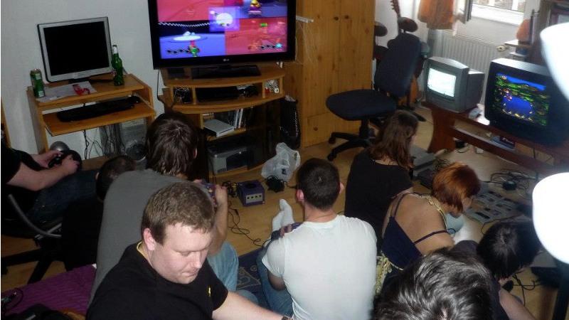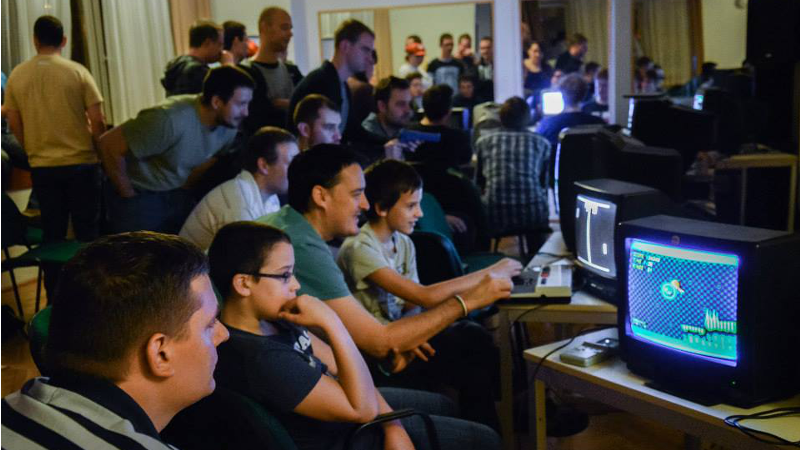K.A.: Sokat jártam akkoriban egy videojátékos közösségi oldal nintendós fórumára. A nintendósok a konzolfanok között is egy elszigetelt kisebbség, de jó volt a társaság. Az első élő fórumtalálkozónk egy házibuli volt nálunk. Eredetileg a Wii Party című frissiben megjelent játék tiszteletére gyűltünk össze, de míg a nappaliban pörgött a Wii, addig a brigád a konyhában ragadt, mert ott csapattuk Segán a Sonic-ot. Annyira bejött a közös retro kockulás, hogy már aznap elhatároztunk, hogy csinálunk egy bulit kifejezetten csak régi gépekkel. Ez lett a Retro Kütyü Játszóház, amit fél évente megrendeztünk egymás után ötször - nálunk. Nagy élmény volt, de a nappalink már az első bulin kicsinek bizonyult. Tudtuk, hogy publikus helyen kéne megrendezni a partyt, de senki nem vállalta, hogy vadidegenek kezébe adja a féltve őrzött játékait, főleg ha azok az idegenek olyan készen vannak, mint mi egy ilyen bulin.