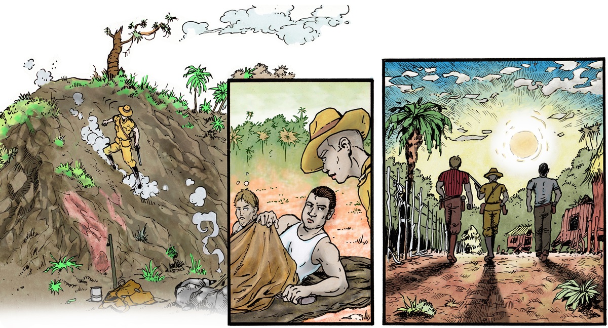 De még szükség volt plusz tartalomra, hogy nyomás szempontjából is működjön a kiadvány. Így jött az ötlet, hogy bekerül +2 oldal a már említett Ács&Baka spin-offból. Ez egy meglepetés, szuperül megrajzolt, frissen készült, laza kis sztori, tulajdonképpen előzmény. De ebből már látszani fog, hogyan képzeljük a 36 oldalas füzeteket. És a két karaktert, Ácsékat is jobban megismerjük. A Jegyzeteket kellett még rendbe tenni: a Kongói Szabadállamról szóló rész túl száraz és hosszú lett, ezt végül egy fiktív levéllel oldottuk meg.