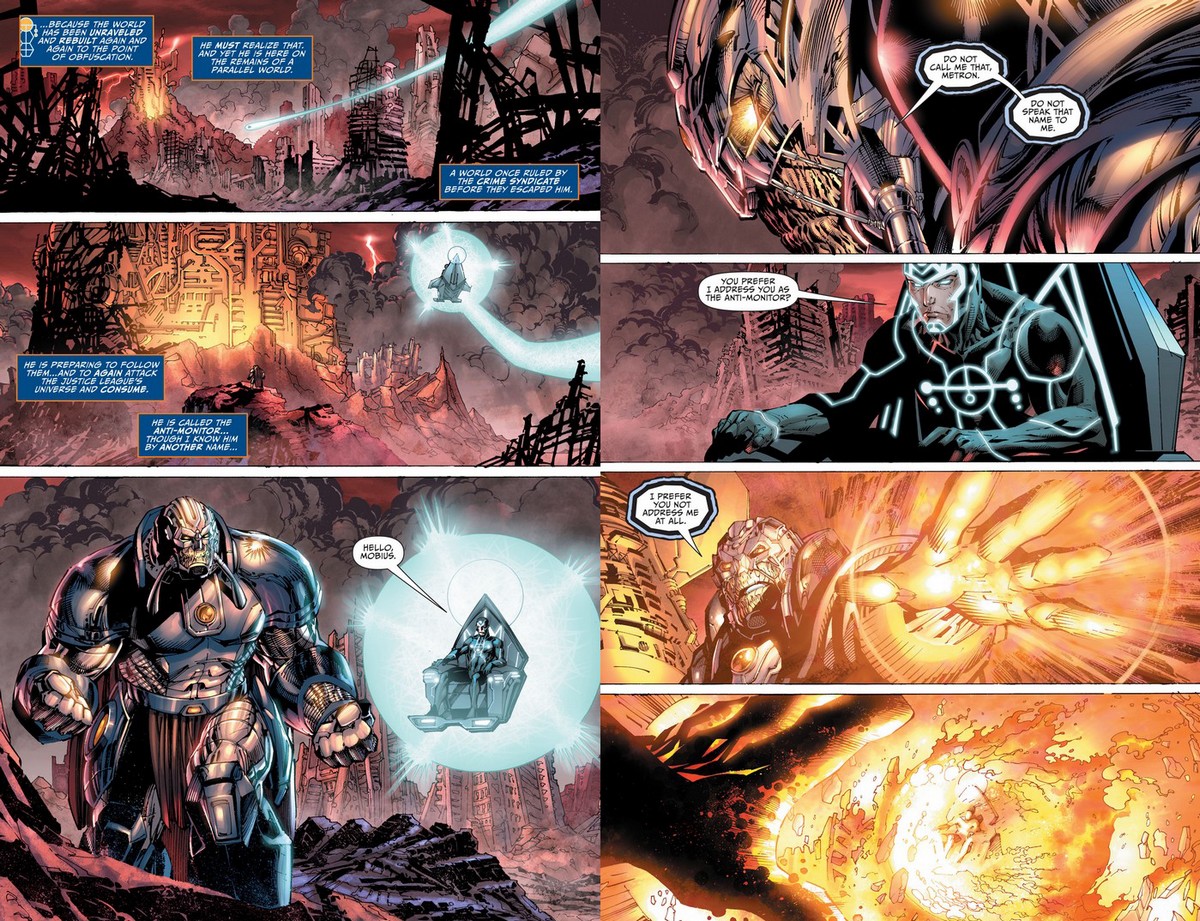 A Darkseid War két isteni teremtmény, az Anti-Monitor és Darkseid háborújáról szól – mivel ezt a háborút egész véletlenül épp a Földön vívják meg, a Justice League teljes ereje felvonul, hogy gátat vessen a két iszonyatos túlerőben lévő gonosz pusztításának. Ám a konfliktust részben háttérben meghúzódó erők provokálták ki, akiknek megvannak a maguk céljai, és tovább súlyosbítják a helyzetet. És akkor még nem is beszéltünk a Crime Syndicate-ről, egy Anti-Monitor által elpusztított alternatív világ gonosz Justice League-jéről, amely még a szerző korábbi – ennél jelentősen gyengébb – crossoveréből, a Forever Evilből maradt itt.