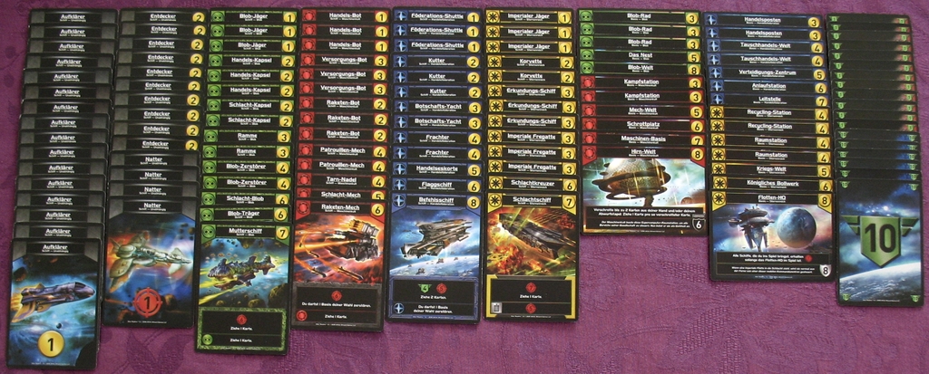 Alapvetően kétféle lappal találkozunk: űrhajó és űrbázis. A hajók mindig a dobópakliba vándorolnak a kör végén, a bázisok viszont előttünk maradnak, egyrészt védelmet nyújthatnak, másrészt hatásokkal vértezhetnek fel, illetve könnyebben kapcsolják be a hajóink baráti képességeit. A szöveges, különleges képességeken kívül három, ikonokkal jelzett alapfunkció létezik: a pénz, a támadás és a gyógyítás. A pénz magától értetődik, ha például olyan hajókat húztam, amelyek csak 2 pénzt adnak, akkor abban a körben ennyi a zsetonom, amelyből lapot vehetek. A támadás se bonyolult, csak össze kell adni a vörös célkeresztekben látható számokat, és az eredményt levonni az ellenfél életerejéből. A gyógyítás is kitalálható könnyen, az meg a saját életerőnket toldja meg.