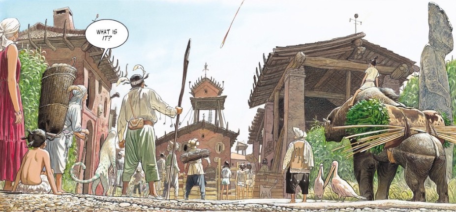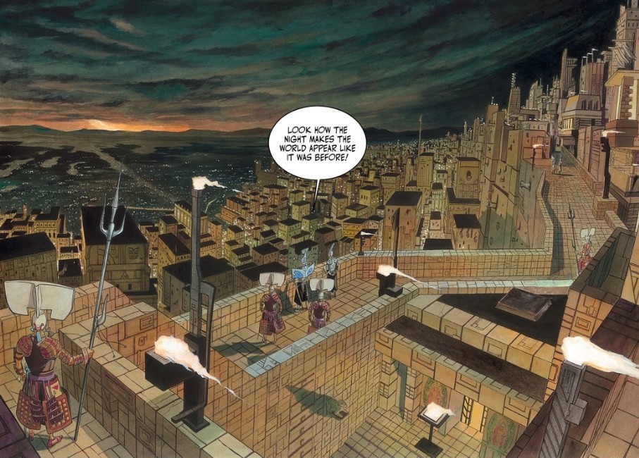 Ó, és ami a forgatókönyv fenti kis sutaságait illeti? Sokat nem fogsz törődni velük, mert túlságosan el leszel foglalva azzal, hogy beszarj a vizualitástól. Az olasz Laura Zuccheri a gyönyörű, aprólékosan kidolgozott, rendkívül részletekben gazdag, szuperrealisztikus francia képregényművészet abszolút netovábbját nyújtja. A karakterek legfinomabb mimikáitól a háborgó természeti erőkön, a buja, sűrű erdőkön, a kopár sivatagokon és a gigantikus városképeken át (estig számolgathatod a falak tégláit és repedéseit) a harcjelenetekig minden tökéletesen megkoreografált és megrajzolt, az oldalstruktúrák profin vezetik a szemet, funkcionálisak, illeszkednek a forgatókönyv mértéktartásához (például alig találkozni hivalkodó közeliekkel).