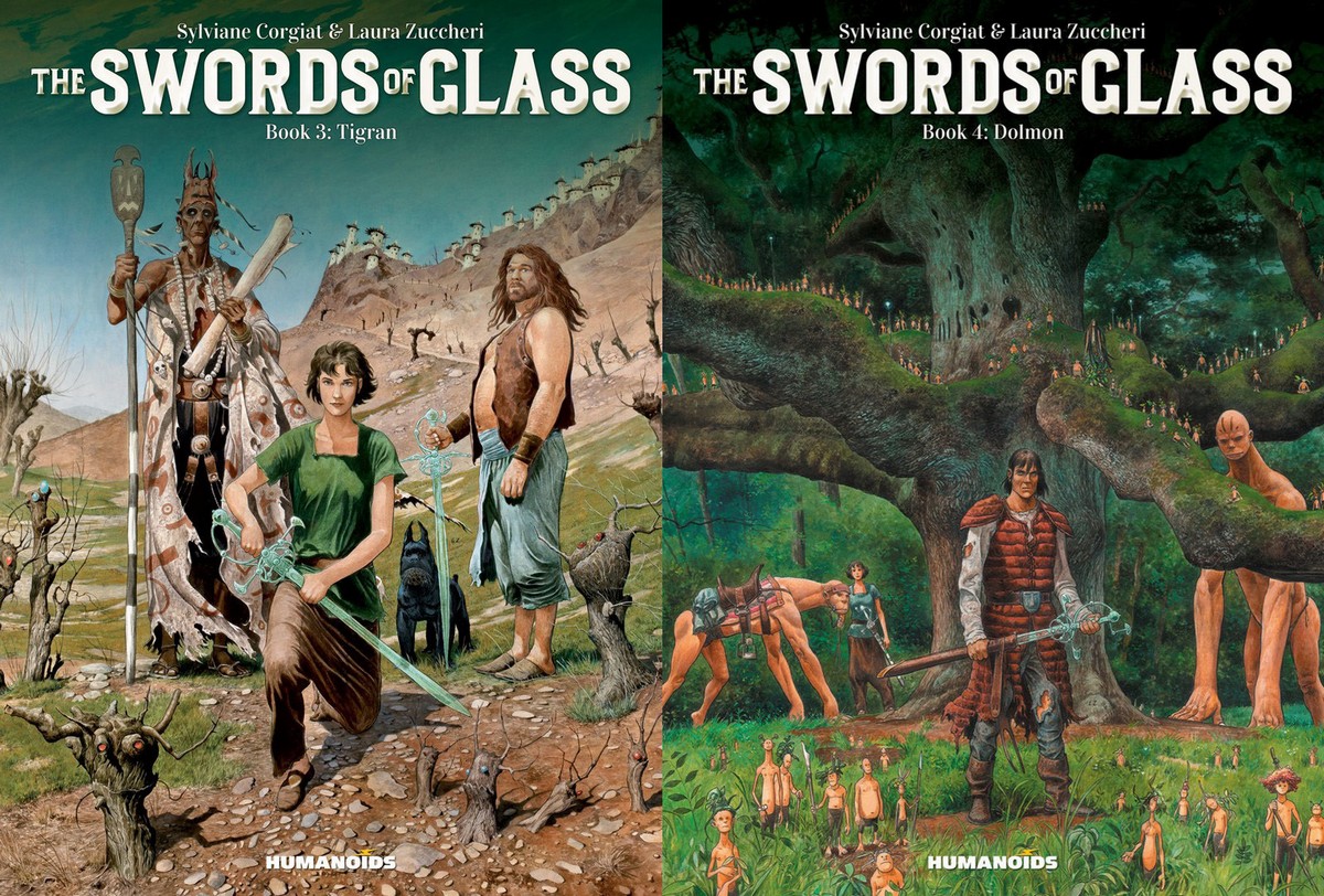 A The Swords of Glass egy eredetileg négyrészes francia képregény, amelyet az amerikai Humanoids kiadó egyetlen kétszáz oldalas, masszív, rendkívül igényes, albumméretű kötetben dobott piacra angolul. Már kézbe venni is kész gyönyörűség, ha pedig kinyitod, beletelik pár percbe, mire észreveszed, hogy úgy bámulod leesett állal a képeit, akár egy kisgyerek a karácsonyra kapott kisvasutat.