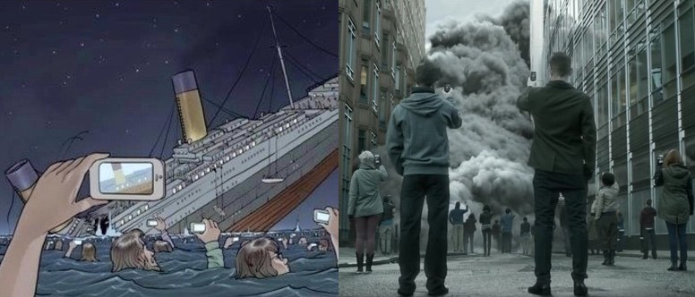 A Black Mirrorra egyvalamit nem lehet mondani, hogy visszafogott lenne. Brookert nem izgatják finomságok és metaforák, ha valamit közölni akar, hát kurvára közli is, urambocsá, alkalomadtán egyenesen szájba rágja. De valahogy jól áll neki ez az egyenesség, ez a bárdolatlan direktség – van, amikor az működik, ha alattomosan a füledbe suttogják a titkokat, de van, amikor az, ha lekevernek egy pofont, és a képedbe üvöltik. És ha közvetlen is a Black Mirror, sosem demagóg – a közösségi média, a digitális és a virtuális világ rákfenéit könnyű lenne elnagyolva a képernyőre kenni, hisz bármilyen utcasarki bölcs megmondja, hogy a zinternet meg a fészbúk a Sátán kreálmánya. Ahelyett, hogy egy konkrét példával elspoilereznék valamit, itt egy gyors szemléltetés – ezt a képet valószínűleg mindenki ismeri (jobbra egy hasonló kép a Black Mirror második évadának előzeteséből):