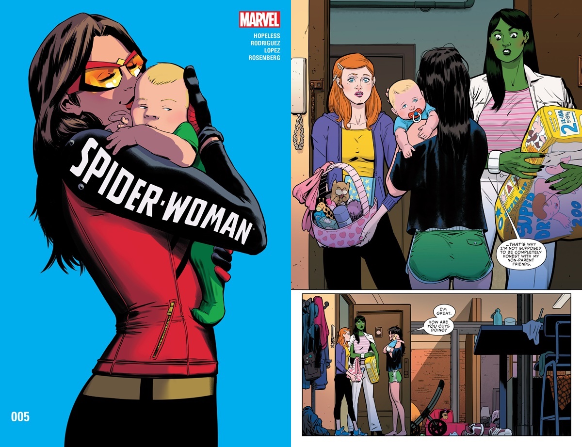 A Spider-Woman már tavaly is kimagasló sorozat volt a hirtelen fókuszváltásával és a karakter teljes újrafazonírozásával (a múlté az érzéki domborulatokra feszülő kezeslábas és a minden férfinemű lényt letaglózó feromonok), azonban a Secret Wars után még nagyobb meglepetéssel rukkoltak elő: Jessica Drew várandósan érkezett meg az új Marvel-univerzumba. Az anyaság nagyobb kihívás egy szuperhősnek, mint gondolnánk, különösen ha a szülés lefolytatására kiszemelt galaktikus kórházat skrullok szállják meg, egy jó útra tért C-kategóriás szupergonosz a mentoráltja és egyben a bébiszittere, szembe kell szállnia saját férfi alteregójával egy párhuzamos dimenzióból, a legjobb barátnője pedig kirobbantja a szuperhősök közti második polgárháborút. Ha ez nem lenne elég, Javier Rodriguez legalább olyan szintre emeli a vizuális narratíváját, mint David Aja a Matt Fraction-féle ünnepelt Hawkeye sorozat esetében. (NK)