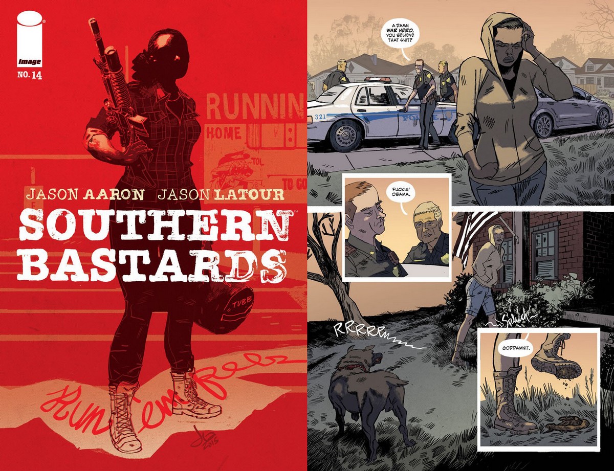 Emlékeztek a Scalped azon részeire, amelyekben Jason Aaron nem a sztorit vitte tovább, hanem attól független, kis történeteket mesélt a rezervátumban élő (vegetáló) emberekről? Mint például a két öreg indiánról szóló Listening to the Earth Turn? A Southern Bastards tavaly nagyrészt hasonló mederben csordogált – igaz, ezúttal a mellékvágányok nagyon is részei a sztorinak, hiszen fontos karakterek múltjában és motivációiban vájkálnak. De a lényeg, hogy Aaron (ezúttal a szinte kellemetlenül nyers stílusban dolgozó Jason Latourral), miközben előkészíti a sorozat fő konfliktusát (hazatér Irakból a meggyilkolt főszereplő – mármint akit főszereplőnek hittél – lánya, hogy szétcsapjon az Isten segge mögötti városban), életeket, sorsokat vázol fel a redneckekkel teli mocskos-véres-aljas Délen, ahol a környéket egy alvilági üzelmekbe is belecsúszó kiskirály, a helyi iskolai futballcsapat edzője uralja. Iszonyatos fertő, tökéletes, de már-már gyomorforgató közegábrázolás. (RCS)