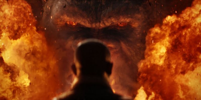 Pedig… pedig Sam Jackson maga is egy szörnyeteg. Egy szörnyeteg a sötétség szívében, Kurtz-üzemmódban. Egy vérben forgó szemű, katonáskodásba és öldöklésbe beletébolyodott megszállott, aki valóságos háborúba megy Kong ellen. Nem véletlenül kapunk pont ugyanolyan képeket, beállításokat róla, mint a hatalmas címszereplőről: szuperközeliket a szeméről, ahogy mérhetetlen dühvel és elszántsággal méregeti az ellenséget. Ha valaminek, hát a Kongnak kettejüknek, ennek a két (óriás)szörnynek a párharcáról kellene szólnia. Micsoda film lehetne! Mestermű, akár. De sajnos attól nagyon-nagyon messze van.