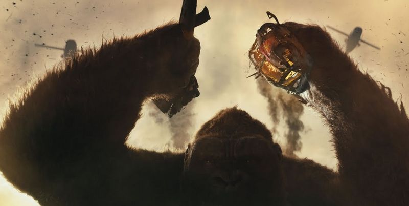 Szóval: a Kong expozíciója a vietnami háborús háttérrel együtt valami egészen elképesztő, és ami mindaddig jó benne, abban azután sem kell csalódni. Míg a három évvel ezelőtti Godzilla talán ha összességében negyedórányi szörnyakcióval szolgált, itt, miután beindul a cselekmény, túlzás nélkül nem telik el úgy öt perc, hogy ne történne a vásznon valami hatalmas, ami ráadásul helyenként még félelmetes, sőt horrorisztikus is: végeláthatatlanul tombol a szörnyorgia (bár az említett helikopteres csörtét sosem sikerül felülmúlni).