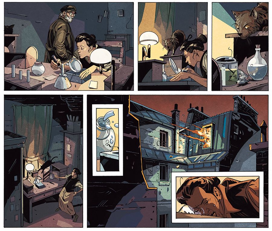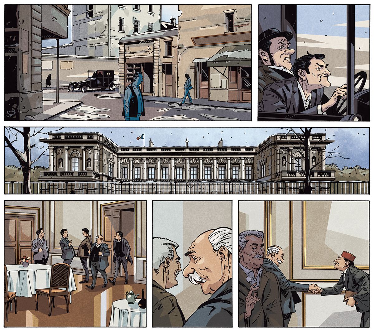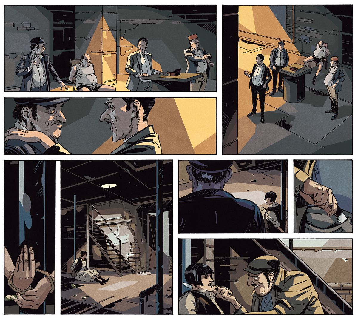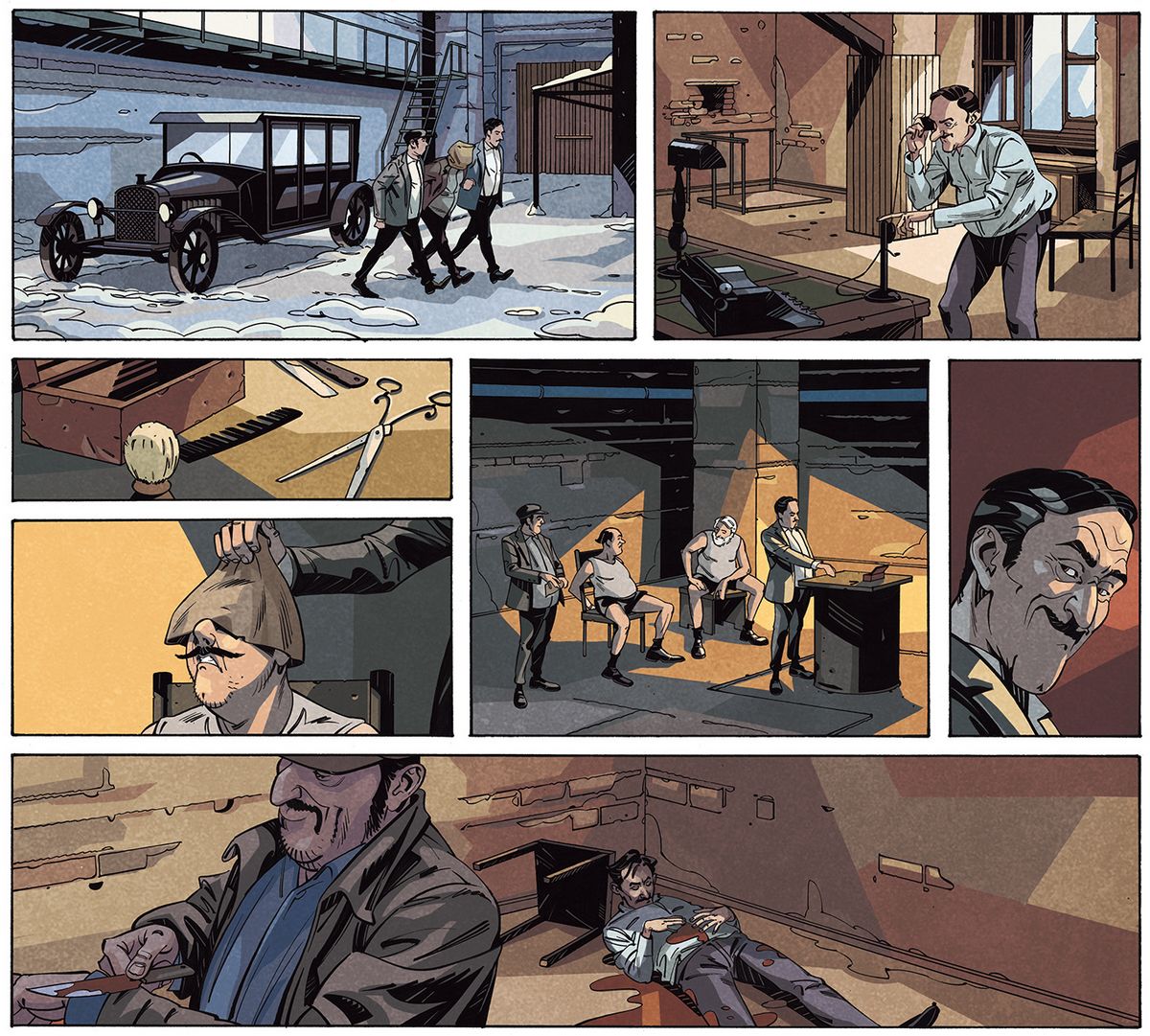 Ebben persze óriási szerepe van a rajzolónak is, a hazánkfia Futaki Attilának, aki a magyar (Spirál) és az amerikai piac után (Percy Jackson, Severed, Conan) pár éve átnyergelt a franciára (első ottani munkája, a The Illegalists szintén történelmi témájú volt, a hírhedt anarchista, Jules Bonnot életét dolgozta fel – most viszont az ismét itthon készült ’56-os képregényt várjuk tőle). Futaki abszolút realisztikus stílusban alkot, és meg is van hozzá a tehetsége: látványvilága gyönyörű, helyszínei részletekben gazdagok, karakterei izgalmasak és markánsak, és a képregény hatásmechanizmusának értőjeként nem csak az alkalmankénti akciókba, hanem a statikus dialógusjelenetekbe is komoly dinamikát visz jól átgondolt beállításaival, oldalstruktúráival, panelelrendezéseivel (a képregényrajzolásnak ez a pokolian fontos narratív eleme egyébként olyasmi, amin nagyon sok hazai alkotó elcsúszik).