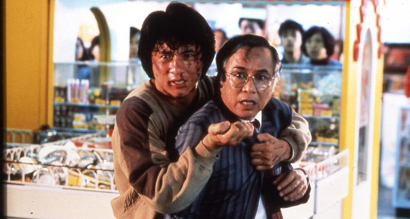 Akkor még lehet, hogy olcsónak találtam ezt a húzást, utólag viszont egyértelmű, hogy egy önmagán túlmutató pimasz metagesztus volt. Nyilván tudta Chan, hogy ezzel kilöki egy pillanatra a nézőt a filmből, de nem érdekelte. Megcsinálta addigi élete talán legőrültebb kaszkadőrmutatványát, nyilván baromi büszke volt rá, és az ismétléssel akarta jelezni a laikus közönség számára, hogy mennyire megismételhetetlenül különleges, amit lát. Számomra ez a pillanat jellemezi a legtökéletesebben a Jackie-jelenséget. Nem kivagyiságot vagy melldöngető arroganciát látok benne, hanem őszinte lelkesedést a kézműves filmkészítés iránt, és ünnepélyes kinyilvánítását annak, hogy hősünk akár a vérét is hajlandó adni a szórakoztatásunkért. Ezek után hogy lehetne nem imádni őt?