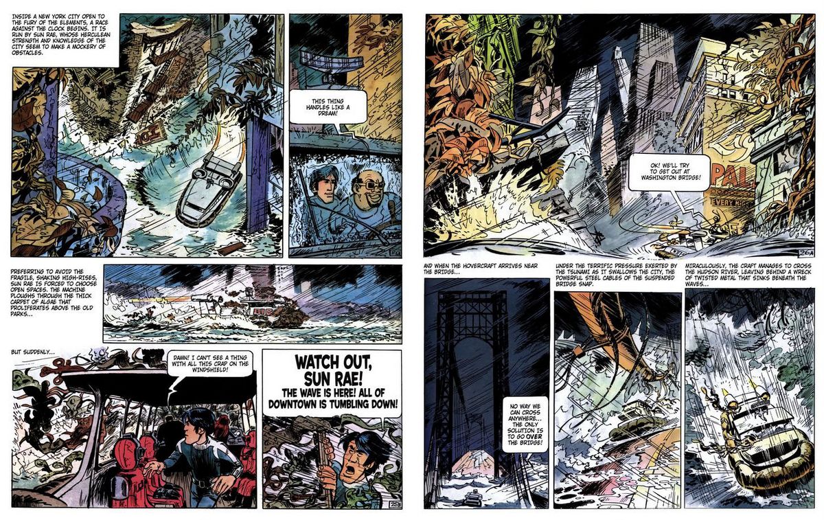 A City of Shifting Waters többé-kevésbé a Bad Dreams folytatása: hőseink ugyanannak a gonosztevőnek a nyomában járva kötnek ki 1986-ban, a kataklizma sújtotta Föld vízzel elárasztott, összeomlott társadalmi rendű New Yorkjában. Mézières rajzstílusa már a nulladik rész óta eltelt egy év alatt is rengeteget fejlődött. A járművek, a városok, a környezetek viszonylag realisztikusak, és maguk a karakterek is határozottabban, hozzáértőbben, kevésbé karikatúraszerűen jelennek meg (bár e vonásait – pl. a testhez képest nagy fejeket – Mézières sosem vetkőzi le teljesen, de míg a Bad Dreamsnél „elrajzolásnak”, addig később már tudatos stilisztikai döntésnek érződnek). A hatalmas vihar elől, összeomló toronyházak és tengerbe dőlő híd közepette hajóval menekülő hősök képsora a sorozat első nagy csúcspontja. De a City of Shifting Waters nem csak vizuálisan előrelépés, Christin is gyakorlottabban, gördülékenyebben mesél, és sokkal jobb egyensúlyt talál a humor, a karakterrajz és a kaland között, mint az előző részben.