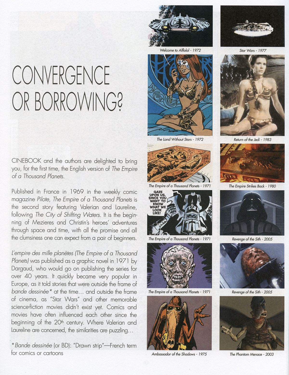 A Valerian és Laureline-t bizonyos körökben a Star Wars egyik fő inspirációjaként jegyzik, és most, hogy mozikba került a filmadaptáció, a „Lucas csomó mindent innen lopott” tudálékosság megint gőzerővel járja a köröket az interneten. Lenne pár szerény szavam ehhez az elmélethez, mi több, mivel itthon (ahogy Amerikában is) viszonylag kevesen ismerik a képregényt, szinte kötelességemnek érzem.