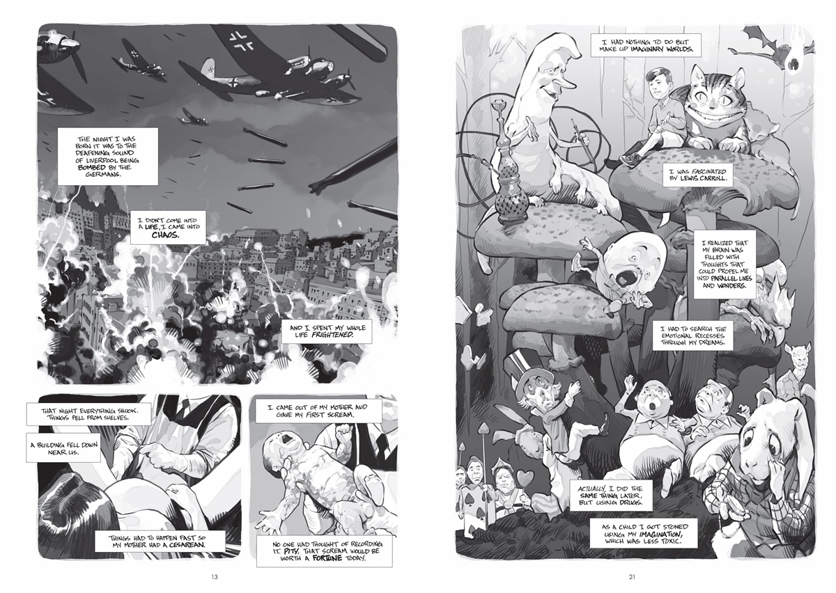 Második lépés: a jellemfejlődés reflektáltan fogalmazódik meg. Nem folyik párbeszéd Lennon és a terapeuta között, éppen ellenkezőleg. Az elbeszélés egy örvénylő monológ, amely néhol atmoszférikus felhővé lágyul, beterítve a rajzok által meghatározott bizonytalan teret, máshol pedig egy nehézsúlyú bokszoló ökölcsapásává keményedik, s tűpontossággal vési bele az olvasó agyába a legmeghatározóbb pillanatokat, legyenek azok fájdalmasak vagy gyönyörteliek.