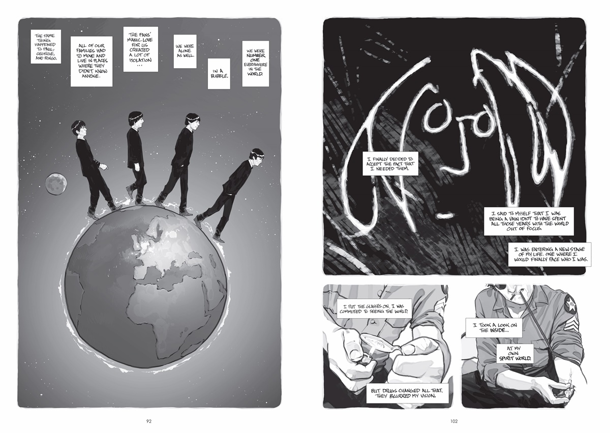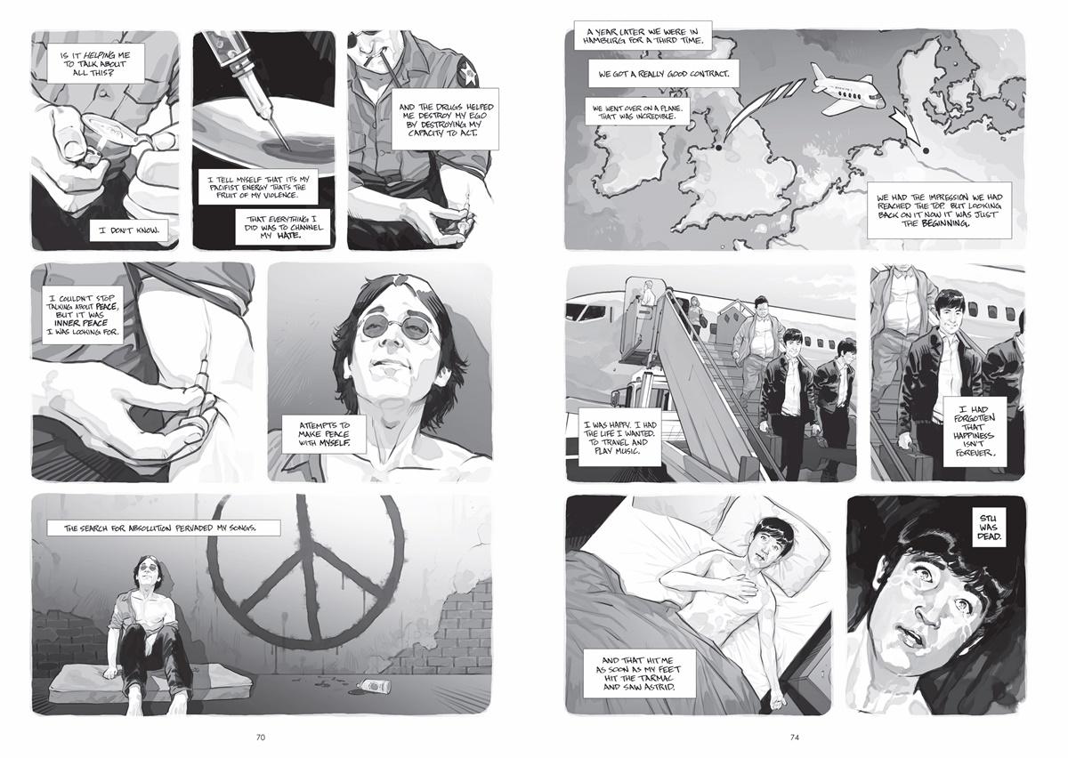Ha ehhez hozzávesszük, hogy a The Beatles a modern könnyűzene történetének talán leginkább kutatott és publikált témája olyan legendák mellett, mint Marley, Dylan, Bowie, Presley, Hendrix és Morrison, akkor talán képet alkothatunk arról, milyen kemény fába vágták a fejszéjüket Corbeyran és Horne azzal, hogy képregényre adaptálták egy nemzetközi szinten kevéssé ismert szerző, egy bizonyos David Foenkinos még kevésbé ismert, s csak franciául megjelent életrajzi regényét Lennonról.