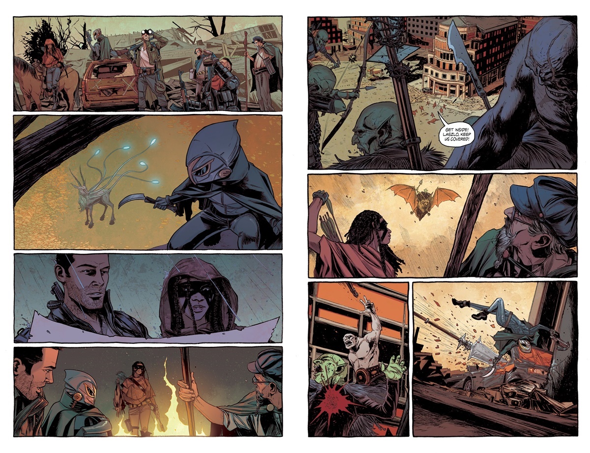 A The Realm esetében viszont nem szerénykednek, rögtön a “Mad Max találkozik a Gyűrűk Urával” és a “The Walking Dead a D&D rajongóknak” csalikat dobják be: az első két szám alapján pedig annyit máris mondhatok, hogy ez nem pusztán blöff, ám mivel jelenleg több remek hybrid fantasy sorozat is fut ( hogy csak a Birthright és a Seven to Eternity címeket említsem), a Haun-Peck párosnak nagyon keményen meg kell dolgoznia azért, hogy akár a közelébe érjenek az egyébként tényleg hatásos elevator pitchnek.