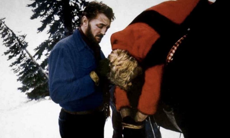 Ezt a kozmikus reménytelenséget már képtelenség továbbfokozni, a kamaradrámaszerű sűrítés felé viszont még messzebbre lehet araszolni a hóban, ha a hősöket szó szerint a fagy csapdájába zárják. Sok rossz ember egy kis helyen, ahonnan nincs menekvés, mert odakint a hideg halál kaszál: Tarantino már csak azért is tudhatta ügyesen alkalmazni ezt a felállást az Aljas nyolcasban, mert előtte már két kiváló amerikai westernben is kitaposták előtte az ösvényt. A Robert Mitchum főszereplésével készült Track Of The Cat a westerntörténet egyik legbizarrabb állomása. A végletesen komor hangulatú filmben hóval körbezárt házukból ki-kitörve a család tagjai egy párducot üldöznek (amelyet sosem látunk) – elvileg ez adná a film főkonfliktusát, de a helyzet becsapós: az igazi dráma ugyanis a házon belül zajlik. Hiszen lehet, hogy odakint csíp a fagy és félelmetes erő fenyeget a fák között, odabent viszont a lélek régóta tomboló hóviharai törik meg a család jobb sorsra érdemes tagjait. A nehezített terepen is nagy formát futó, ritka ellenszenves figurát megformáló Mitchum mellett egy káprázatos temetési jelenet is könnyen beleéghet (illetve fagyhat) a retinánkba: William A. Wellmann rendező nem kertel, egyenesen a sírgödörbe szúrja bele a kamerát, és innen, a gödör havas peremével keretezve, a szürkéskék téli égbolt előtt nézhetünk végig a zsarnoki anyával megvert család gyászoló tagjain, míg a família névleges feje részeg kábulatban, magatehetetlenül hever benn a házban.