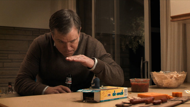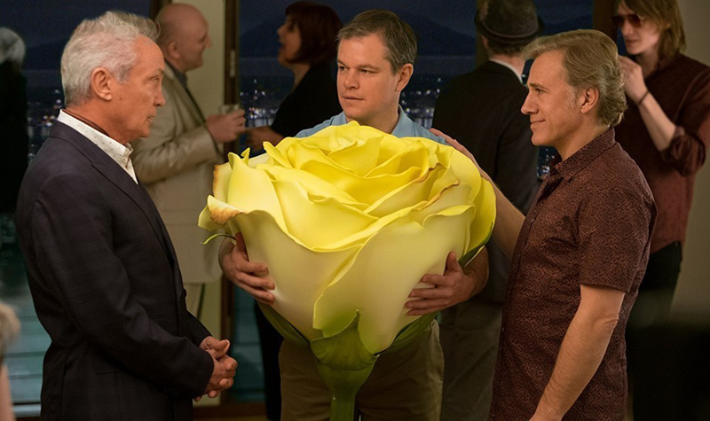 A Kicsinyítés legüdvözítőbb vonása, hogy a swifti hagyományok szerint a szatíra eszközével nyúl a témához. Főhőse, Paul Safranek (Matt Damon) tökéletes stencil a hétköznapi ember mintapéldányához: a különlegesség képzete teszi átlagossá. Mindennél jobban szeretné, de nem tartozik az úttörők közé. Igaz, hogy már az eljárás felfedezésének pillanatától foglalkoztatja a kicsinyítés lehetősége, de nem mer belevágni, nem képes elhatározni magát. A napi robot után karikás szemmel bámulja a kocsmapult felett villódzó tévéképernyőt, megbabonázva áll a mozgásban lévő világ előtt, és miközben szigorúan kispolgári mértékkel emelgeti a söröskrigliket, a soha be nem váltott nagy dobás lehetőségének gépies ismételgetésével tartja magában a holnapokba vetett hitet.