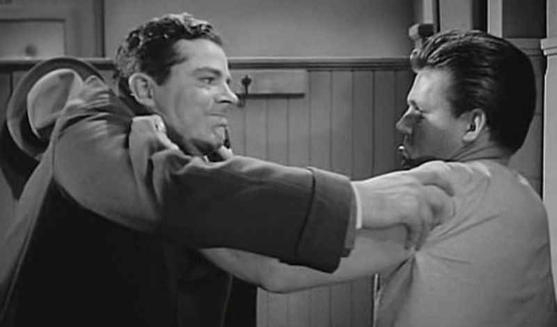Mert az Ahol a járda véget ér nagy kérdése nem az, hogy kit sittelnek végül le a gyilkosságért, hogy a főhős elkapja-e a helyi gengszterfőnököt (Gary Merrill nagyszerűen alakítja az undorító, nyájas férget, ha kicsit vaskosabb szerepet kap, gyakran emlegetnék ezt a karakterét a noirról szóló diskurzusokban), még csak nem is az, hogy ki hagyja ott a fogát egy lőporfüstös leszámolásban. Hanem az, hogy Dixon képes-e túlnőni az apja árnyékán, hogy le tud-e számolni a múltjával és a saját démonaival, nem utolsósorban pedig a saját természetével – hogy képes-e helyes döntést hozni, felelősséget vállalni a tetteiért, és végre tényleg jó emberré válni, kerüljön, amibe kerül. Dana Andrews remek a szerepben, főleg, hogy Preminger nem traktálja őt és a nézőt tudálékos narrációval és felesleges dialógokkal-monológokkal, belső vívódásait a tekintetére, arca rezdüléseire, a testtartására, egyszóval a játékára bízza. (Ennek ellenére nem tudok szabadulni a gondolattól, hogy ez az egyszerre brutális és szomorú karakter jobban állt volna Sterling Haydennek vagy Robert Ryannek.)