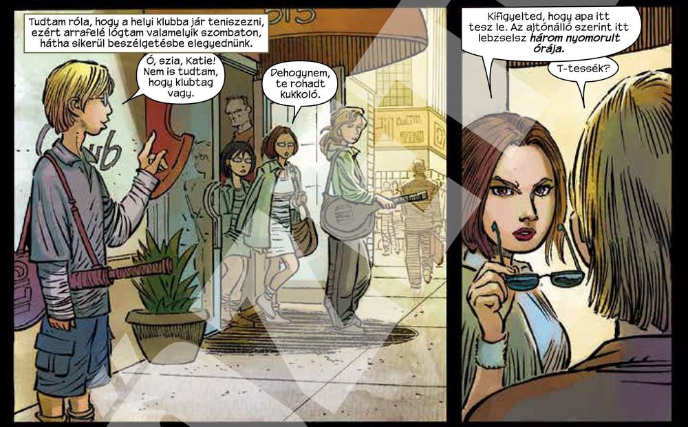 Röviden: egy fejezet alatt jutunk el a kezeslábasban gizdáskodó, jogosan közröhej tárgyává váló Ha/Vertől az überkúl Mindy McCreadyig, akiről el kell hinnünk, hogy 10 évesen (!) felnőtt férfiakat gyilkolászik puszta kézzel (is.) A pofátlan húzás működik, nincs cápaugrás, mert úgy kapcsolja Millar a karaktereket és a történetet ortodoxabb fokozatba, hogy közben ugyanolyan harsány és vagány stílusban mesél, plusz a nagyon gonosz, trademark Millar-humor is állandó. A trükk, hogy miközben a két igazi főszereplő, Ha/Ver és KisDög öngyógyító mutánsokat megszégyenítő módon állják a pofonokat, olyan brutálisan erőszakosak John Romita Jr. rajzai, mintha lehetne is következménye a vérontásnak. (Az egyik fő karaktert illetően lesz is.) És persze Mindyék, illetve a maffiaszál belépésével olyan nyaktörő tempóban követik egymást az elképesztően dinamikus panelekben elregélt akciók, hogy menet közben fel se tűnik az olvasónak a rugalmas elszakadás az eredeti koncepciótól.