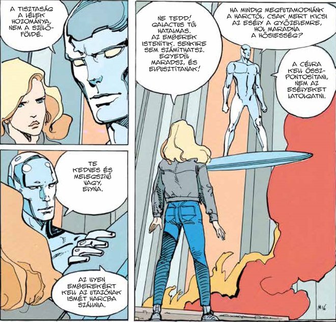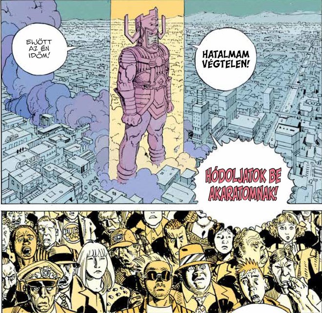 Stan Lee próféciába illő történetére Moebius káprázatosan részletes rajzai teszik fel a koronát. Az amerikai képregények stílusától teljesen eltérő ábrázolásmód sokkal komolyabbá, vizuálisan megkapóbbá és utópisztikusabbá teszi a művet. Minden egyes vonal, árnyék és kontúr önálló életre kelti mind a megalkotott világot, mind a benne ádáz küzdelmet vívó szereplőket. Galactus grandiózus isteni mivoltának ábrázolása egyszerűen tökéletes: Moebius újra és újra elhiteti az olvasóval, hogy az emberiség egy igazi (hamis) istenséggel áll szemben, aki feljebbvaló és magasztosabb mindenkinél. Az Ezüst Utazó ábrázolása törékenysége ellenére szintén lehengerlő: olyan földöntúli karakter, aki minden humanoidon túlmutató képessége ellenére sokkal emberibb, mint a bolygó lakói, akiket védelmébe fogad.