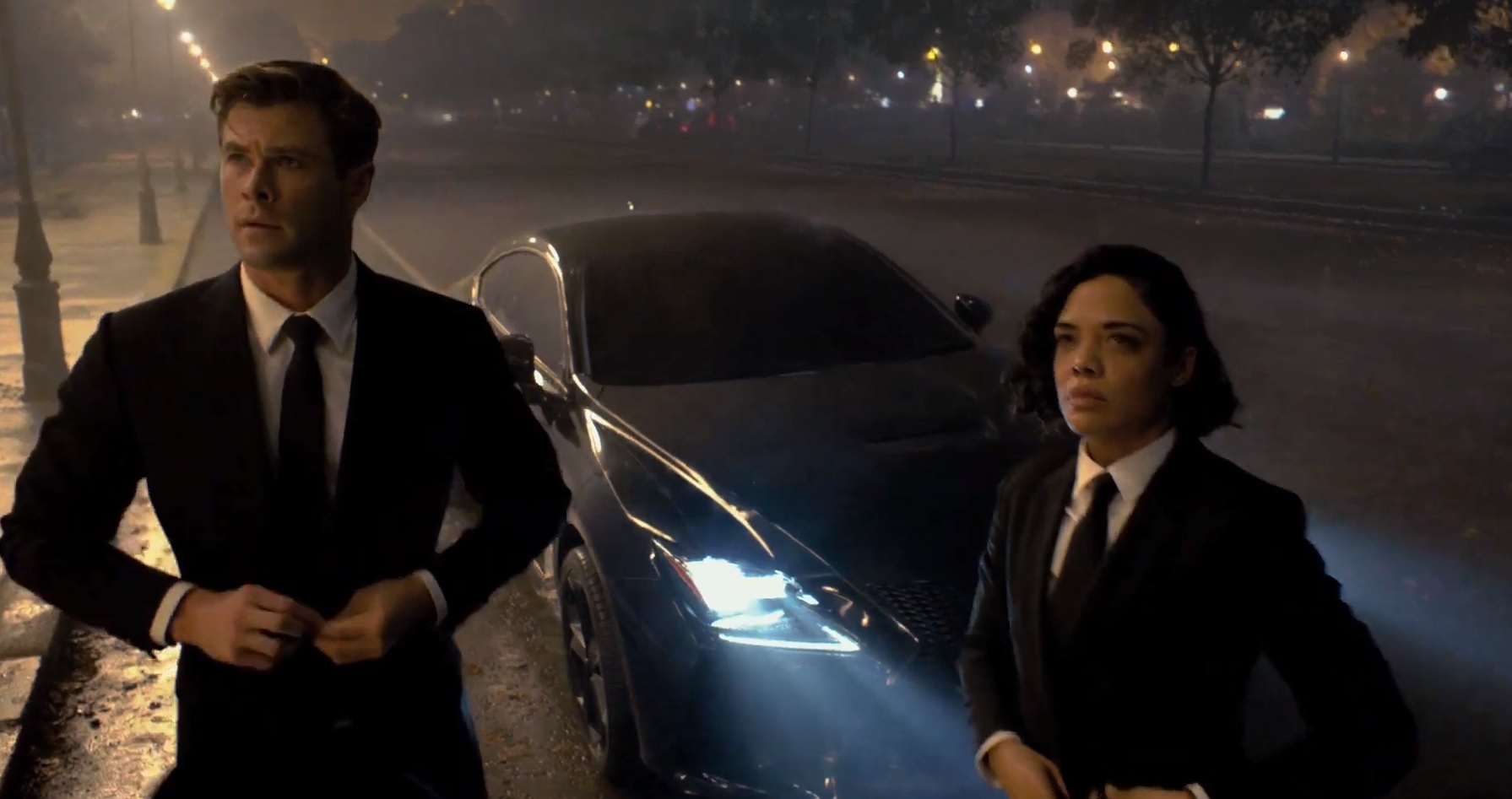 Az új castingnak úgy sikerült megfelelnie a korszellemnek, hogy közben váratlanul egy eredeti megoldással is előrukkoltak. Chris Hemsworth játssza az ügynökség pökhendi és allűrökkel teli sztárját, H ügynököt - ő már a Marvel-filmekben úgy bejáratta a nézőket, hogy ha egy Prostamol Uno-reklámban szerepelne, azért is kifizetnék a mozijegy árát. Sokkal izgalmasabb választás az M előjelű gyakornokot alakító Tessa Thompson, akinek karizmáját például már a Westworld sorozat multis kápójaként is megcsodálhattuk. Nemcsak hogy nő, de fekete is, amivel rögtön két pofont adtak a PC-felügyelet által szorongatott Hollywoodnak. Pont annyira szép arcú és annyira érzéki testarányokkal bír, hogy még el tudjuk hinni róla a forgatókönyvben álló mesét. De valószínűleg ezek a „barna éjfél szeme pillantása”-jelenetek győznek meg minket arról, hogy itt a személyiség fogja eladni a karaktert, és nem a twerkelés.