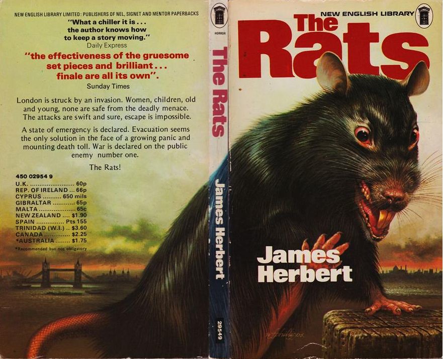 Az állatos horroroknak A fehér cápa és a Patkányok dobta fel a labdát. Bár az előbbi ismertebb (még ha nem is annyira a saját jogán, mint inkább Spielbergnek köszönhetően), utóbbi kétségkívül hírhedtebb, ugyanis Peter Benchley regénye kedves kis gyerekkönyv Herbert dühös, agresszív, nihilista patkánytébolyához képest. Megveszekedett erőszak- és halálorgiájának köszönhetően a kritikusok jobban viszolyogtak tőle, mint egy háziasszony a friss pitébe mászó kártevőtől, az olvasók viszont zabálták, és a 100 ezer példányos első nyomás pár hét alatt elfogyott. Beindult az új trend, és néhány éven belül a kutyáktól és macskáktól a rákokon és nyulakon át a disznókig és halakig minden rákapott az ember ízére, aminek kettőnél több vagy kevesebb lába van. De Herbert ponyvairodalmi ámokfutását már pusztán azért is nehéz überelni, mert aligha létezik olyan állat, amely a patkányoknál zsigeribb viszolygást vált ki az emberből.