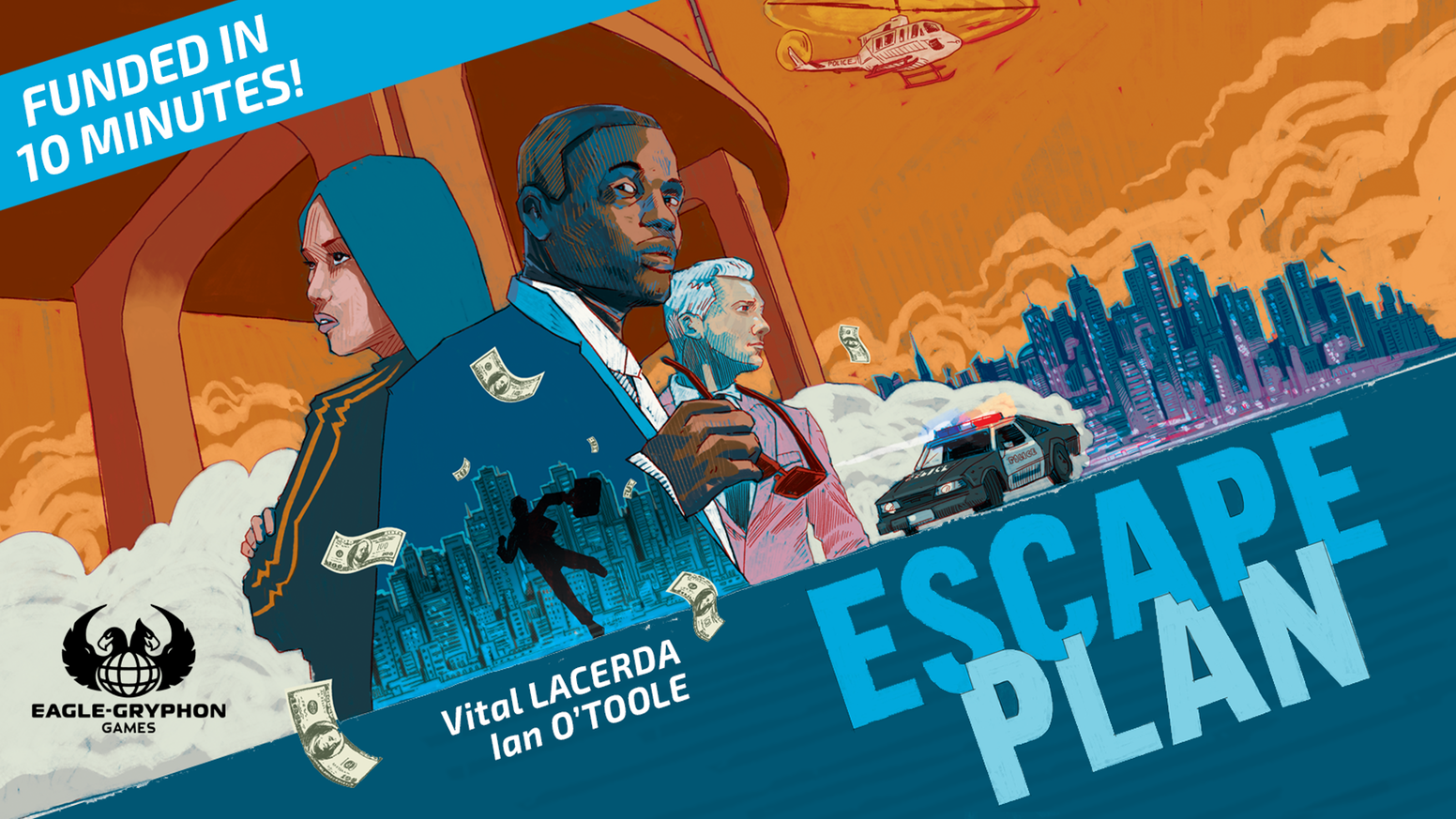 Vital Lacerda neve lassan fogalommá válik társasjátékos berkekben. Egyik legújabb alkotása az Escape Plan, amelyben a csapat egy heistet már végrehajtott rablóbanda különböző szakijait alakítja (robbantós, sofőr, széftörő). A játék ott kezdődik, hogy valaki feldob minket, a kopók pedig a nyakunkba szakadnak, és nagyon kevés időnk marad, hogy minél több zsetont behúzzunk a kintlévőségeinkből (night club, trezorba rejtett pénzeszsák, stb.), miközben egyre forrósodik a lábunk alatt a talaj. Mindez, akár hiszed, akár nem, egy eurógame képében, amely amellett, hogy remek hangulatú, még az agytekervényeket is alaposan megdolgoztatja. Titkos favoritunk!