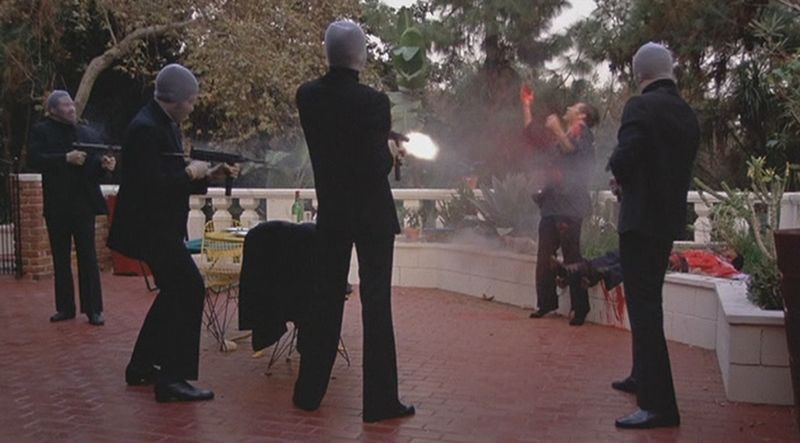 És amíg Carter egy házi vetítésen szembesül testvére halálának okával, addig Tackett sokkal kínosabb szituációban, egy pornós moziban, a vásznon szexre kényszerített unokahúgára nyálat csorgató közönség soraiban tudja meg, mi történt. A Hit Man egészen eddig a pontig meglehetősen visszafogott tempót diktál, az első fél óra pedig különösen lassú. Tackett lődörög a városban, régi kapcsolatokat melegít fel, mindenfelé kérdezősködik, jobbra-balra kefélget, kitapogatja a hatalmi viszonyokat, a nyakára küldött verőemberekkel kergetőzik, de sokat nem halad előre a sztori. A pornómozis reveláció után azonban Armitage ballasztként szabadul meg minden humortól és könnyedségtől, az így áramvonalasított cselekményre rászerel egy rakétát, begyújtja, és meg sem áll a stáblistáig. Ez az utolsó húsz perc egy kőkemény, véres és nihilista, oroszlános-gépfegyveres-puskás-kivégzéses gyilokorgia, a blaxploitation-finálék egyik legtekintélyesebb body countjával.