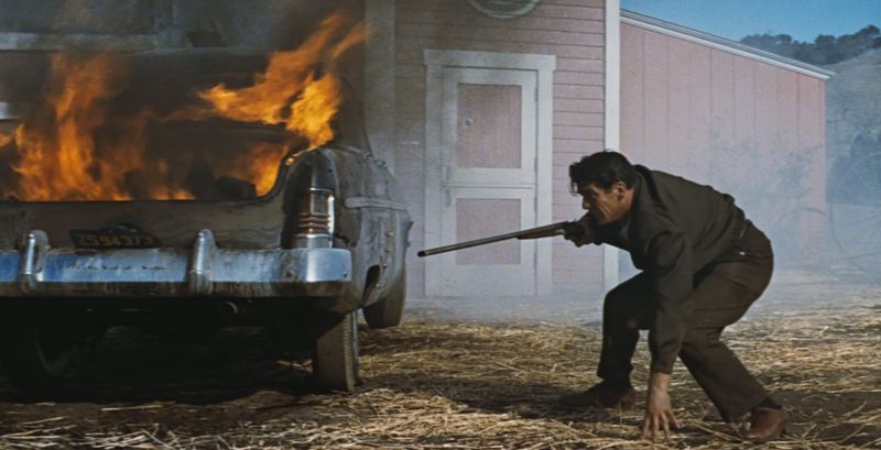 A bankrablás során mégis meglepő váratlansággal és főleg: véletlenszerűséggel szabadul el az erőszak. A hirtelen eldördülő lövések dramaturgiai szabályszerűségeket mellőzve, a nézői szimpátiát figyelembe nem véve osztanak halált, azzal a kellemetlen gondolattal vezetve fel a finálét, hogy bárki, tényleg bárki otthagyhatja a fogát. Az amishok farmján játszódó leszámolás a korához képest különösen brutális és kegyetlen, bár itt kimutatja foga fehérjét a film egy kissé problémás, idejétmúlt aspektusa is. A cselekmény Shelley-t, a szénbánya menedzserét (Victor Mature) állítja szembe a három bankrablóval (akik között ott van a fiatal, veszélyesen hideg és szadista Lee Marvin is), merthogy az egyik fia szégyelli, hogy nem kitüntetett, ellenségirtó hősként tért haza a háborúból. Vagyis Shelley-nek, hogy helyreálljon a világ rendje, bizonyítania kell a „csak akkor vagy férfi, ha fegyvert ragadsz”, a tökösség, a maszkulinitás jegyében – egy kisgyerek előtt, akinek kisgyerekes elképzelései vannak bátorságról, hősiességről és fegyveres konfliktusról. A film ráadásul odáig megy ebben a témában, hogy még a rezzenéstelen arcú pacifista, „a vallásom tiltja az erőszakot” amish (Ernest Borgnine) is vasvillát ragad a kritikus pillanatban. És nem szénakazalt nyalábol fel vele.