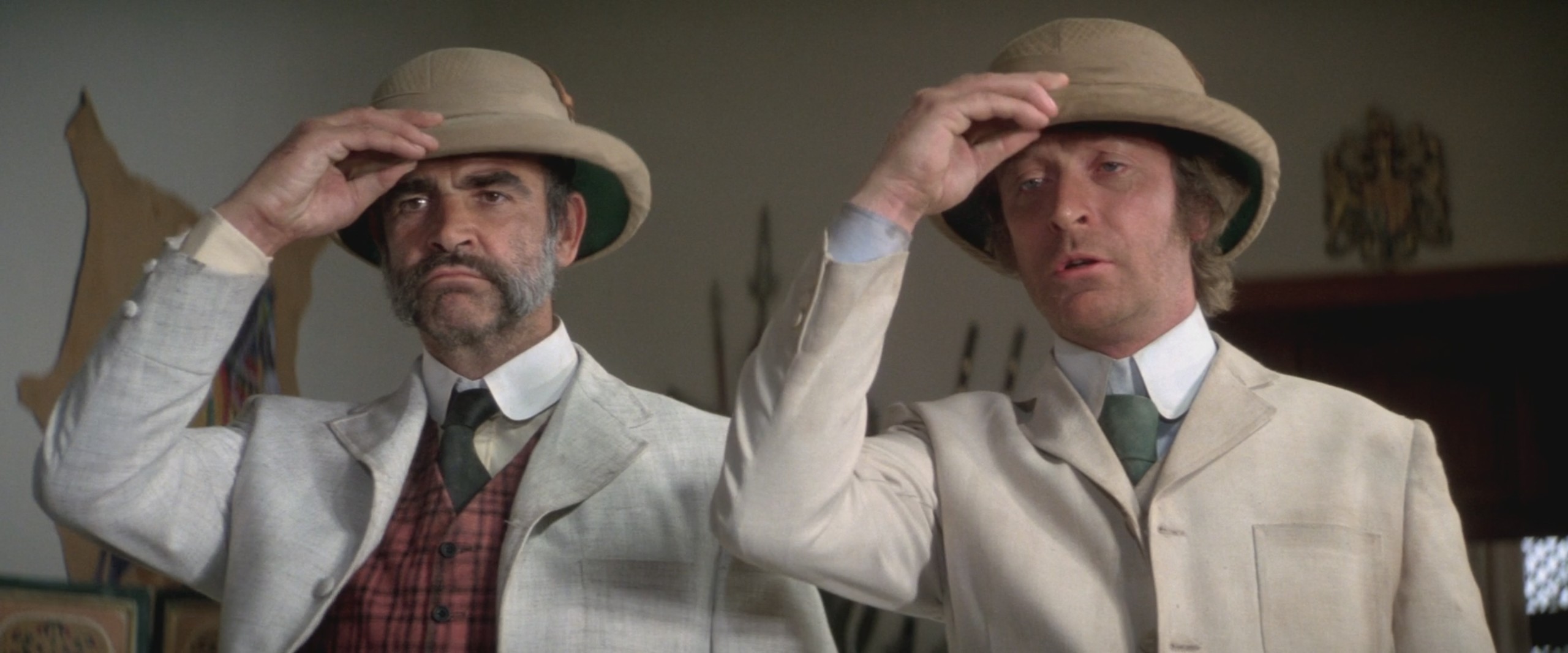 A kaland ezzel kezdetét veszi: a két bajtárs és jó barát a műfaj legszebb hagyományainak megfelelően fagyon és forróságon, hegyeken és folyókon, sivatagokon és ellenségeken gázol át őrült célja felé – hol erővel, hol fifikával, hol szerencsével, de mindig vidáman és eltökélten jutnak előre. Ugyan ki tagadhatná, hogy igazi férfiak, mi több, igazi britek? Caine és Connery alakításában ott van Kipling karaktereinek minden arroganciája, megrendíthetetlen önbizalma (valamint a királyi élethez való elidegeníthetetlennek hitt joga) és szerethető derűje, de ott van benne a XX. század második felének már felvilágosultabb társadalmi és történelmi képéből fakadó irónia is. Az egymás iránti hűségük és barátságuk mellett (amelyet még a kapzsiság és az önteltség sem képes kikezdeni) Huston úgy tartja a nézőt a főhősei oldalán, hogy a gyarmatosítási bűnöket sokáig afféle habókos túlkapásként ábrázolja, és komikumra játssza ki.