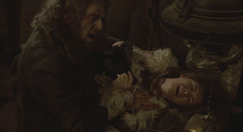 Az 1972-es Death Line (Amerikában Raw Meat címen is ismert), a brit horrorok egyik méltatlanul kevéssé ismert gyöngyszemének ez a hétperces, egysnittes (valójában egy rejtett vágást azért tartalmazó) kamerapásztázása a földalatti kannibálok horrorpanoptikumában nem csupán olyan gusztustalan és háborodott, hogy a két évvel későbbi Texasi láncfűrészes mészárlás Bőrpofája is megnyalná és leharapná utána a hullák mindahány megmaradt ujját, de a műfaj egyik filmkészítési csúcsteljesítménye is. A méltóságteljes lassúsággal, elegáns fordulatokkal dolgozó kamera és a felkavaróan-üresen visszhangzó minimalista hangeffektek monotonitása már-már normalizálja a közszemlére tett ocsmányságokat – ahogy Neil Marshall 2005-ös Barlangja, amikor az első szörny mindenféle figyelemfelkeltő vizuális vagy hangelem nélkül, a maga teljes természetességében bukkan fel pár másodpercre, jelezve: nincs ebben semmi különös, itt ez a dolgok rendje.