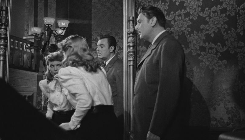 Korát meg nem hazudtolva, a Csigalépcső melodrámai, szinte szappanoperás kitérőt tesz a középső harmadában. Az első negyedórában mesterien felvezetett suspense a kispadon várja, hogy a forgatókönyv kibontsa a házban élők karakterét és szövevényes viszonyrendszerüket: Mrs. Warren és ápolónője állandó konfliktusát, Mrs. Warren fia és mostohafia hideg, barátságtalan kapcsolatát, a mostohafiú és a titkárnő szerelmi viszonyát, a házvezetőnő alkoholizmusát. Ezek jellemzően nem csupán színesítik a cselekmény közegét, hanem idővel fontos plot pointokként vagy legalábbis ravaszul elhelyezett red herringekként szolgálnak.