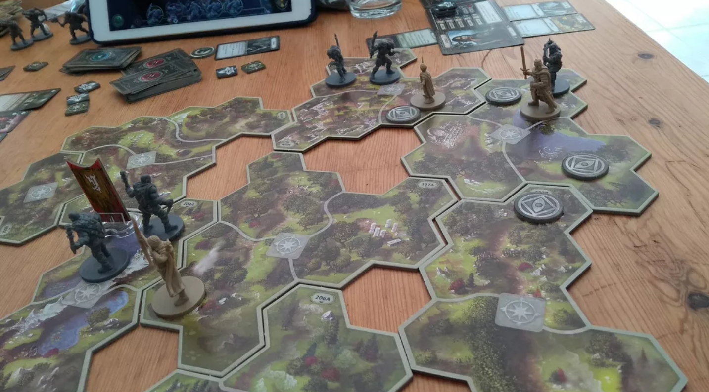 A tavalyi magyar megjelenések egyik nagyágyúja A Gyűrűk Ura: Utazások Középföldén, amely a fantasy szerepjátékok hagyományait követve egy kalandozós, felfedezős, kazamatákat kipucolós társasjáték (dungeon crawler). Ennél is több azonban, mert a műfaj unalomig ismételt jegyeit sikeresen kerüli el, illetve dobja fel élvezetes mechanikákkal, olyan egyszerű, de rendkívül ötletes megoldásokkal, mint a kockadobásokat helyettesítő egyedi kártyapakli, mely az esélyeket és a személyre szabott képességeket patikamérlegen kínálja, vagy a kalandok nagytérképen és kistérképen való megosztása, illetve a már jól ismert applikáció-vezérelt történetmesélés. Elsőre talán nem hangzik érdekfeszítően, ellenben a játékmenet profán mivolta döbbent rá, hogy minden része gyönyörűen illeszkedik, áramvonalas, vezeti a játékost, és mégis hagy elég döntési lehetőséget a kibontakozásra. Nem mellesleg elszakadtak végre a Jackson-féle filmtrilógia képi világától (nyilván a méregdrága jogok miatt), így a játék lapjairól a korábbi kiadványok illusztrációinak stílusa és hangulata köszön ránk. Fantasztikus játék, ha még soha nem próbáltál ilyen jellegű társast, tökéletes választás.