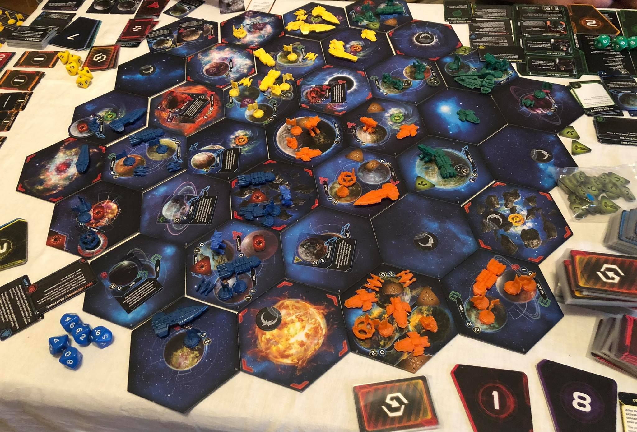 A Mérhetetlen Vének egyik legnagyobbjának új kiadását megénekeltük már korábban, azonban tavalyig kellett várni, hogy végre egy szinten, vagy talán-talán azon is túl emlegessük a legendás, ikonikus, meghatározó harmadik kiadással. Ugyanis ekkor érkezett el az ideje, hogy más alapjátékokat megszégyenítő tartalommal üstökösként csapódjon be a Prophecy of Kings kiegészítő (aki ismeri a Harmadik Kiadást, annak nem kell ecsetelni, mi mindennel bővítette ki zászlóshajó játékát az FFG). Elődjétől eltérően ezúttal nem opciókat kapunk, melyeket szájízünk szerint emelünk be az egyébként sem egyszerű játék alapszabályai közé, hanem mindent vagy semmit alapon turbózzuk fel az áramvonalasított, de mégis brutálisan összetett és kegyetlenül élvezetes játékmenetet. Időmilliomosokra és elvált férjekre is gondoltak a 7-8 főre kibővített, asztalosok álmát jelentő játékmóddal, energiaital-gyártó cégek kifejezett támogatásával - itt minden van, mi sci-fi hadurak szemének és szájának ingere, csak győzzék üleppel végigülni a majdnem egész napos hadjáratot.