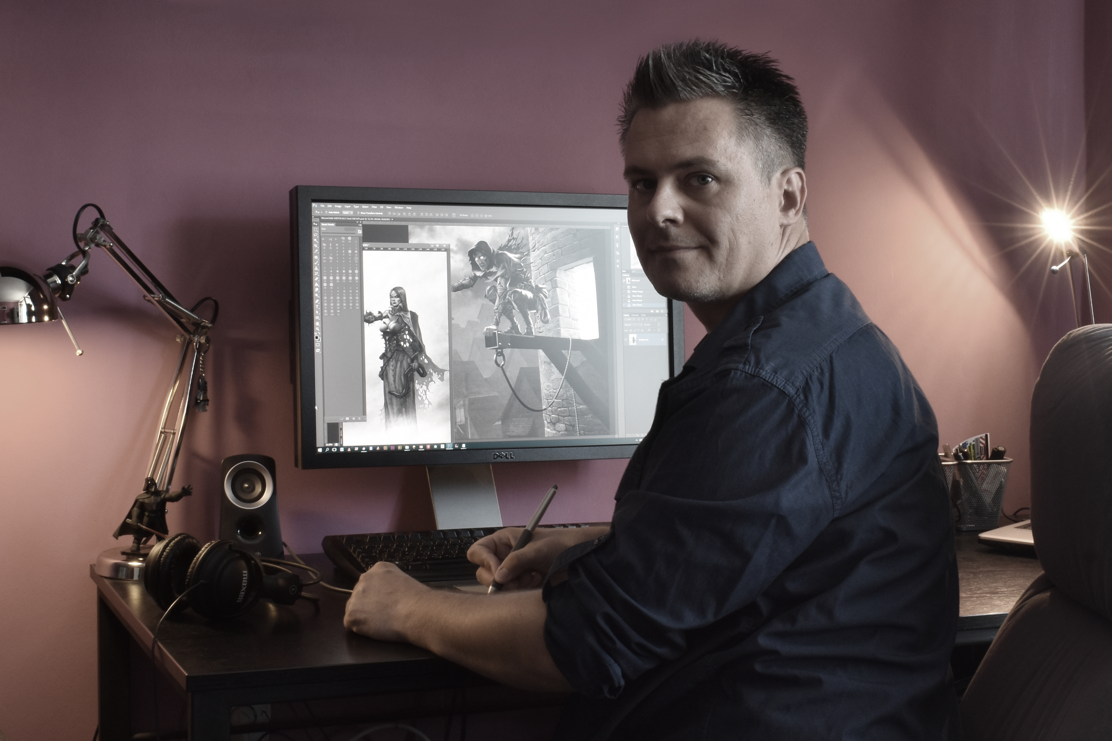 A Scholastic 2017-től kezdve modern rajzokkal adta ki a régi Jackson–Livingstone-köteteket, és az új játékkönyveikhez is ilyen stílusú illusztrációk készülnek. Ezek a grafikák a ma divatos mobiljátékok és ifjúsági regények képi világát idézik. A magamfajta negyvenes geekek azonban joggal mondhatják, hogy egy lapozgatós könyv csak félkarú óriás, ha nincsenek benne olyan fekete-fehér, barbáros-sárkányos, oldschool fantasy illusztrációk, amilyeneken anno felnőttünk. Ahhoz tehát, hogy a Fighting Fantasy brand ismét sikeres lehessen itthon, mindenképpen keresni kellett egy ügyes kezű grafikust, aki új képeket készít a Scholastic köteteihez. Emellett fantasykedvelő képregényrajzoló után is kutattam, mivel Livingstone már a 2018-as Nerdblog-interjú végén felvetette, hogy ha ilyen ügyesek a magyar képregényesek (kapott tiszteletpéldányt a Mesék az ágy alól-ból és a Cafe Postnuclearból is), akkor igazán csinálhatnának egy hivatalos Tolvajok városa képregényt is! Először azt hittem, csak tréfál, mert addigra igencsak barátságos hangulatú beszélgetés alakult ki. De aztán kiderült, hogy nem vicc, nagyon is komolyan gondolja! Hónapokon át tartó, élénk emailváltás és Skype-beszélgetés vette kezdetét, ami lényegében a mai napig tart.
