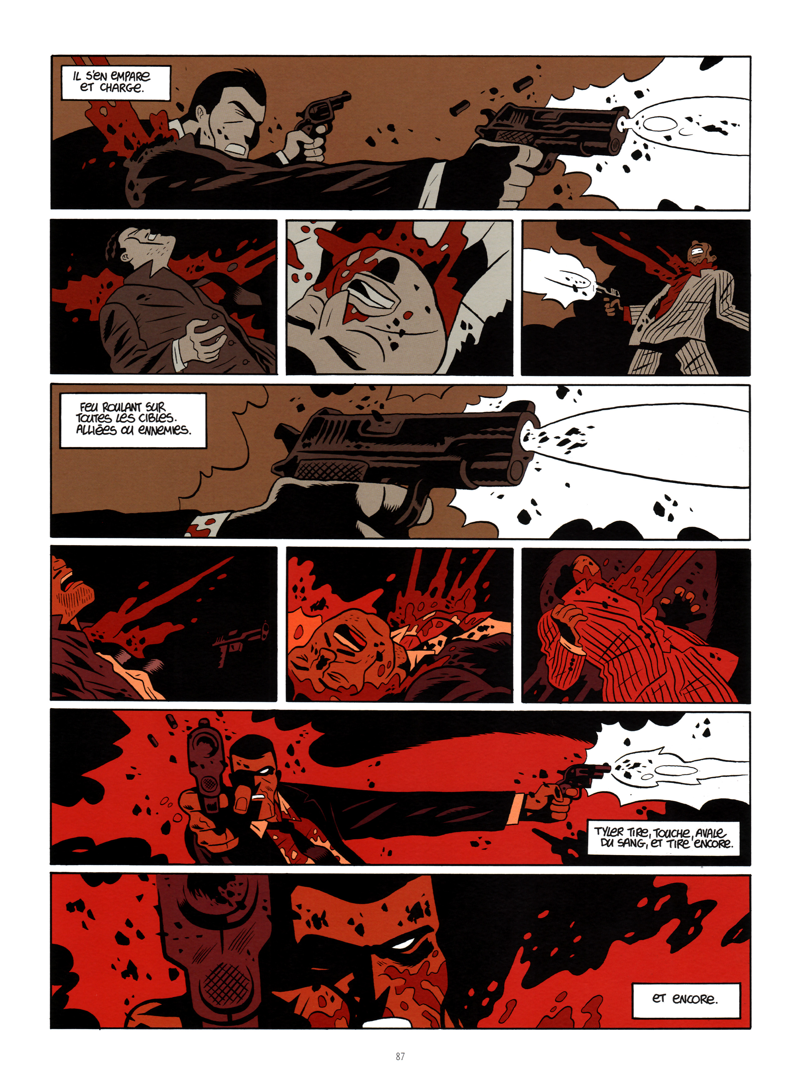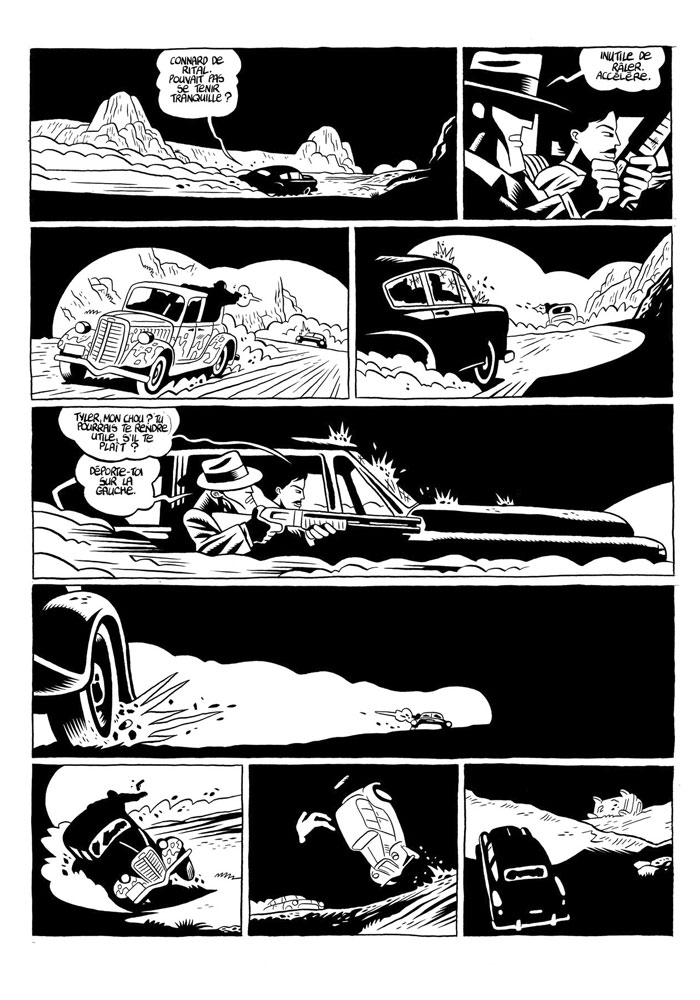 Brüno ugyanis legalább olyan értőn játszik a fény-árnyékhatásokkal, mint Mignola vagy akár Frank Miller (az eredeti kiadás ugyan színes, de nem véletlenül döntött a Dargaud egy limitált fekete-fehér album elkészítése mellett is), a kissé stilizált, elnagyolt, durvának tűnő vonalakkal megrajzolt, mégis realisztikus stílusa pedig telitalálat, amikor olyan témával találkozik, mint az ötvenes évek Amerikája. Nury háttértudása és útmutatása több helyütt is megmutatkozik a képregény vizuális világában: a borító az I died a Thousand Times című Jack Palance-film borítója alapján készült, a történet forgatókönyvét egy John Sturges-rendezte modern western Bad Day at Black Rock (1955) ihlette, a sajátos narráció Kubrick The Killing (1956) című filmjéből táplálkozik, Tyler alakja Humphrey Bogart és Lee Marvin, Stelláé pedig Jayne Mansfield és Kim Novak amalgámja.