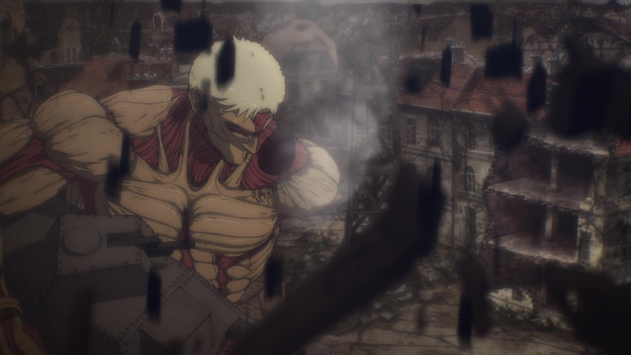 Az Attack on Titan mégsem hagyta el a fentiek tükrében akár infantilisnek is nevezhető korábbi történetszövési módszerét, szerencsére nem ment át propagandává (bár a globális hatások jobban érződnek rajta, annak ellenére, hogy fikciós-történelmi anime, igaz, teljesen jogosan és logikusan) - a csendes építkezést még mindig egyre feszültebb légkör követi, hogy aztán titánként robbanjon elő a vad, zabolátlan és durva erőszak, aminek során a jól megszokott taktikai párharcokra kerül sor, hol az egyik, hol a másik fél kerekedvén felül.